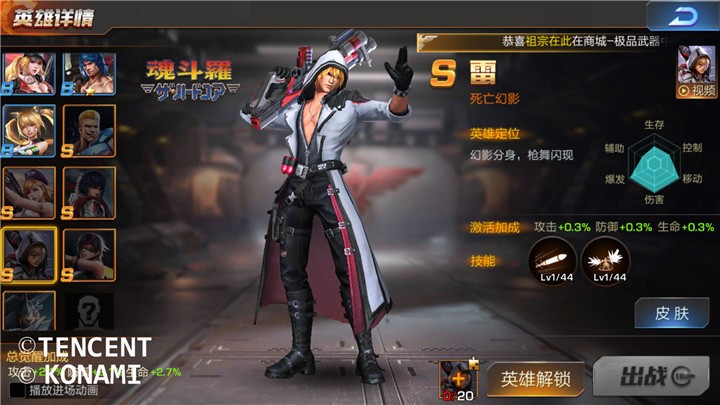 雷作为魂斗罗部队中,唯一一位爆发、伤害、移动三项资质全满的英雄,可以轻松应战2V2。强大的输出是雷安身立命的根本!他拥有强大的【幻影分身弹】这一技能,可以实现双倍攻击。一旦敌人近身,那么等待敌人的就是死亡。因此,用雷来守护据点是非常不错的选择!同时,魂影分身弹的二段技可以实现本体与幻影位置的交换,轻松躲避伤害。哪怕是队友暂时性阵亡,雷也能独自一人守着据点继续战斗。雷,上帝的宠儿,为战斗而生。