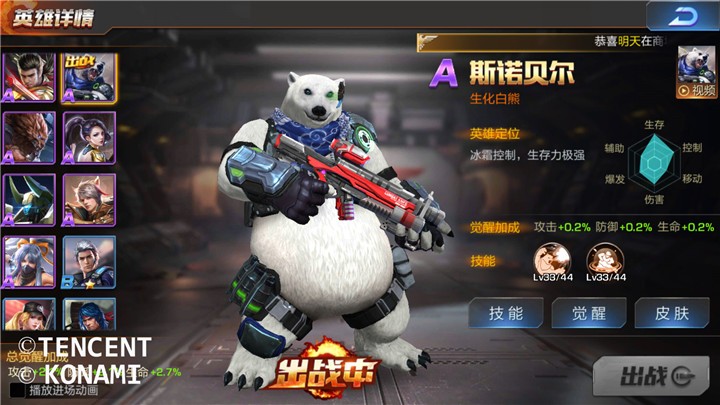 白熊是魂斗罗部队中唯一拥有防护技能的英雄!因此在2V2中,它非常适合站在据点,正面承受敌人的火力攻击。无论对手有多么强大,指挥官只需要释放白熊的技能【浩劫之盾】,就可以唤出防护罩,承受很大一部分伤害,为队友的增援提供时间。特别是白熊的另一技能【极寒之冰】可以让对手大幅度间速,指挥官可以趁此机会对其穷追猛打。即使没有对手的支援,白熊也能够在战场上游刃有余。